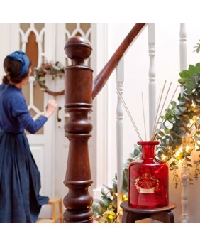 A fragrância inesquecível desta coleção e os seus vidros de cor vermelha ou transparente com apontamentos dourados acrescentarão um toque de sofisticação à decoração de qualquer espaço.