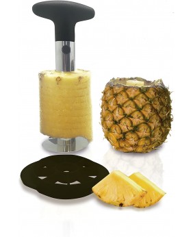 Pelador de ananás que corta de maneira uniforme. Funciona como um saca-rolhas. Material resistente.