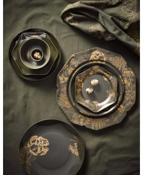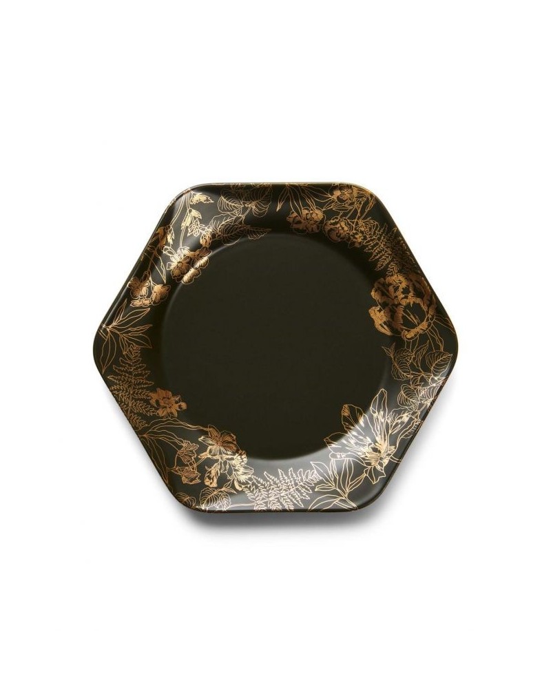 Este lindo prato artesanal é feito da melhor porcelana. 3% ouro verdadeiro foi usado para a impressão de flor dourada chique.