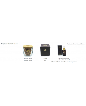 Desenvolvemos, cuidadosamente, com os nossos Perfumistas um perfume delicado com notas cítricas e de chá verde que se unem/fundem com o suave aroma de pétalas de rosa. A peça perfeita para a sua casa!