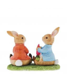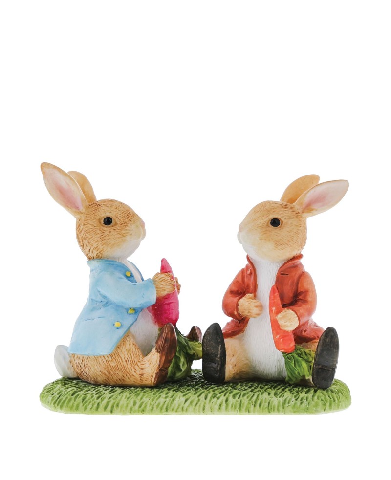 A bela estatueta esculpida de Peter Rabbit & Benjamin Bunny Comendo Legumes inspira-se nas ilustrações originais de Beatrix Potter. Esta encantadora peça adicionará diversão e travessuras a qualquer lar. Vem em uma caixa de presente com a marca, tornando-se o presente perfeito para qualquer fã de Beatrix Potter. Não é um brinquedo ou produto infantil. Destinado apenas a adultos.