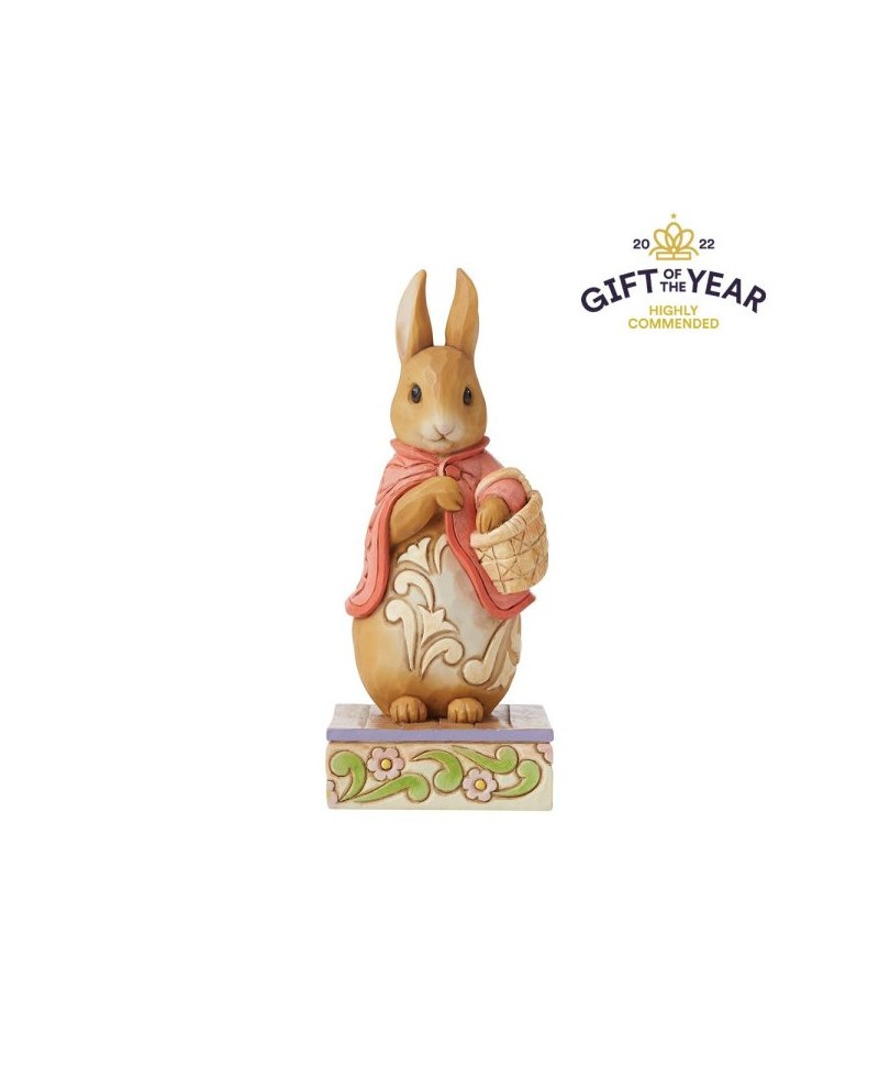O premiado artista folclórico Jim Shore traz seu estilo único para a amada história de Beatrix Potter, The Tale of Peter Rabbit, através de encantadores presentes artesanais que encantarão leitores de todas as idades. Esta estatueta de Jim Shore apresenta a tão doce Flopsy, que se destaca graciosamente com sua famosa capa rosa. Apresentada em uma bela caixa de presente com a marca.