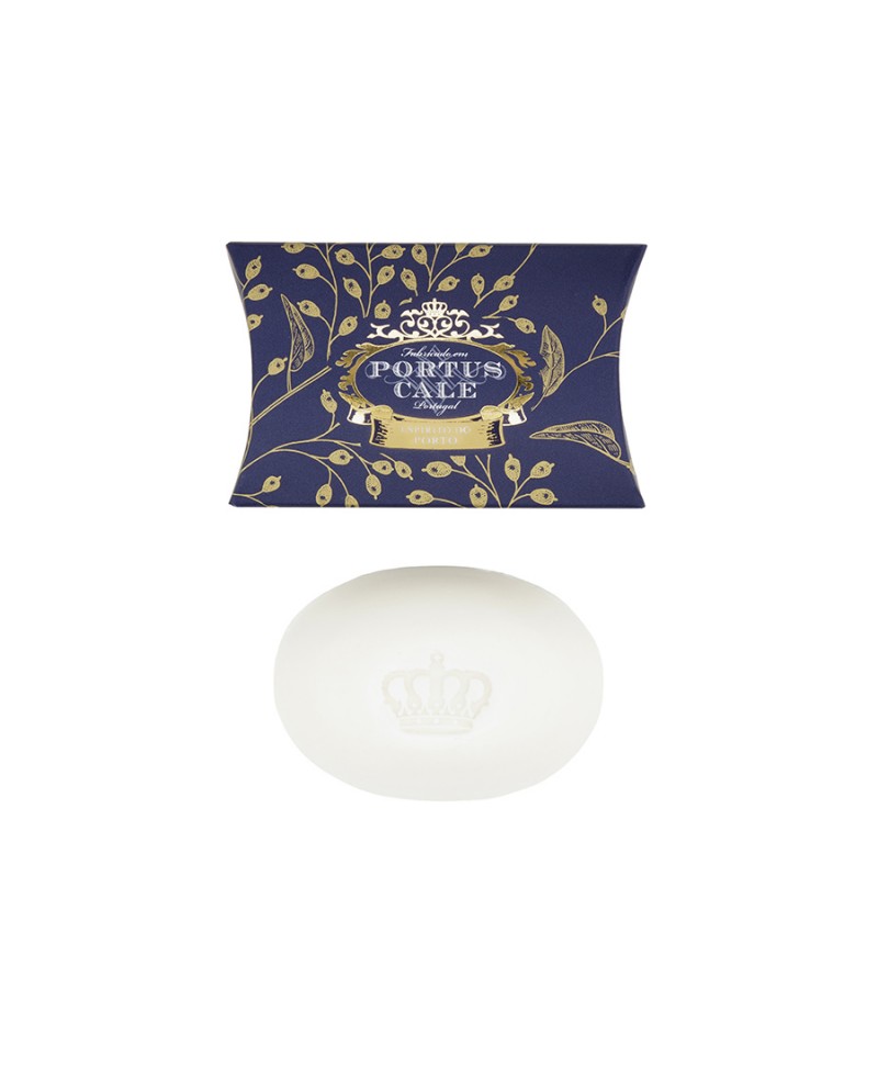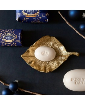 Embalado à mão num invólucro que combina em si motivos dourados sobre um azul profundo, o sabonete Festive Blue da Portus Cale, feito com base de azeite e óleo de coco, possui um bouquet amadeirado de notas de abeto, cedro e alecrim. Uma lavagem luxuriante com um aroma a condizer.