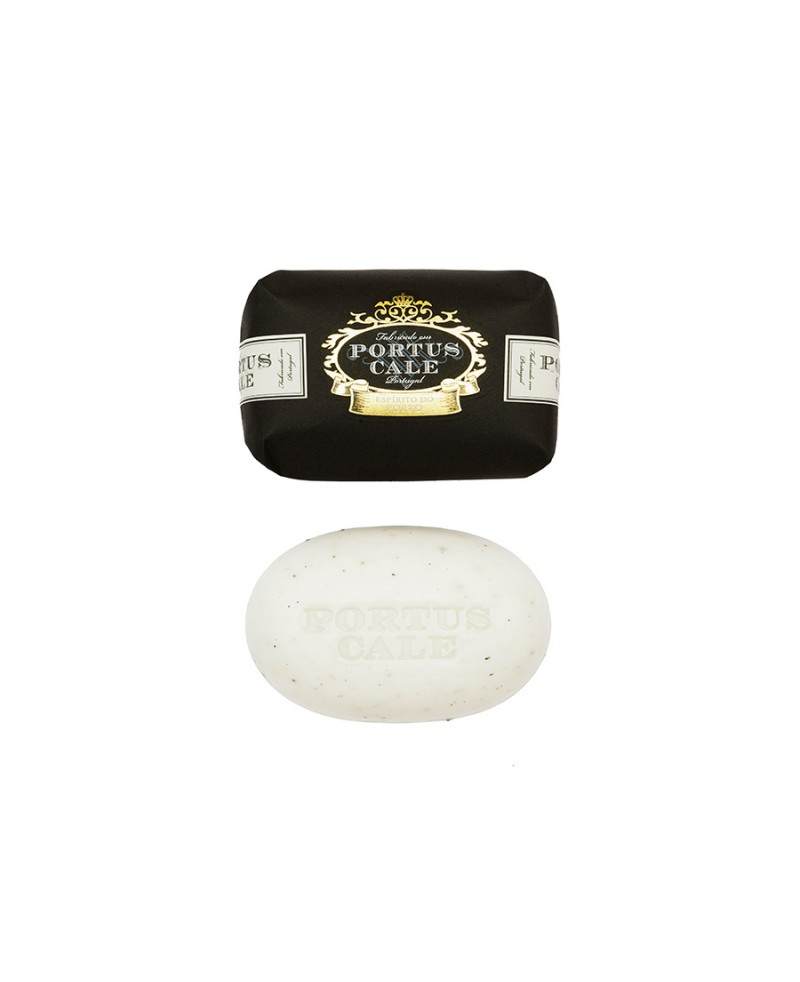 Perfumado com um aroma sofisticado e suculento, o resultado da fusão de Uva e Bagas Vermelhas, e embrulhado à mão em papel negro mate adornados com arabescos dourados, cada sabonete é criteriosamente elaborado com os melhores ingredientes, uma base 100% vegetal e grainhas, que resulta numa lavagem luxuriante com um suave efeito esfoliante.